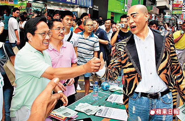 其實詹sir噚日係宣傳佢喺今個月27號開始喺沙田大會堂舉行嘅舞台劇《男人之虎》,詹sir話今輯會以莎朗史東、副局長事件做故事題材,詹sir話睇吓用條褲焗腸,究竟要幾錢喎!擺明諷刺最近特首同政府俾人批評唔公開副局長助理薪酬單嘢啦!咁啱噚日詹sir行經民主黨喺行人專用區擺嘅攤位,佢哋就係抗議緊呢樣嘢而搞緊簽名抗議行動,詹sir見到同道中人,當然即刻走埋去簽名捧場,佢仲同何俊仁、李永達握手互相支持㖭!