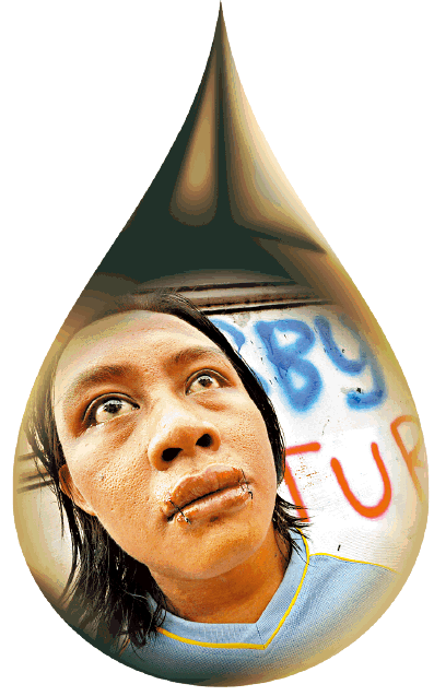 政府上月提升汽油價格30%,20學生在雅加達校園抗議,其中兩人更用針線縫上嘴唇。