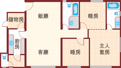 間隔:3房2廳(1套房、另設工人套房)