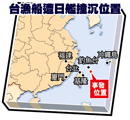 台灣漁船在釣魚台海域遭日軍艦艇撞沉事件,令台日關係緊張升級!行政院長劉兆玄昨日在壓力下,強硬要求日方「放人、道歉、賠償」,並坦誠為保釣魚台,甚至不惜一戰。有藍營立委更要求軍方出動海軍最大、戰力最強的紀德級驅逐艦,到釣魚台海域宣示主權。而日方在台提出強烈抗議後,終於在昨晚把被已扣押三天的漁船船長何鴻義釋放回台。