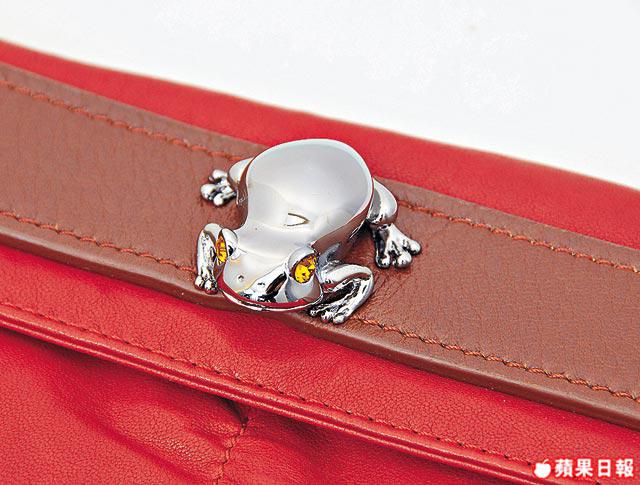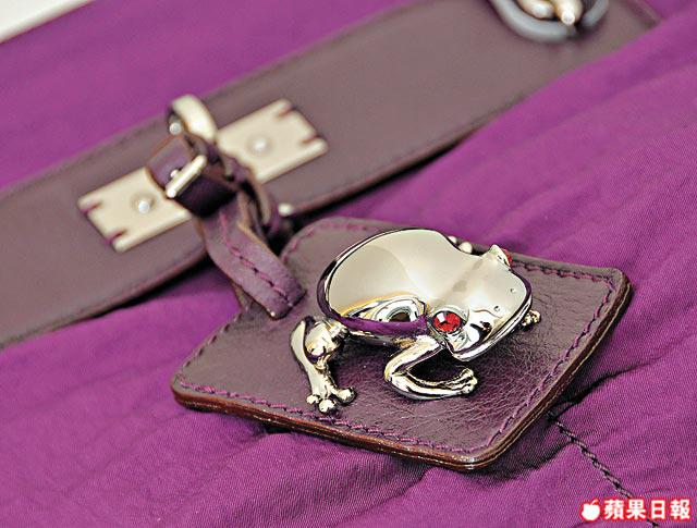 一般女孩子都怕濕淋淋的青蛙,童話故事的公主對青蛙更是萬分厭惡,但現實中漂亮的Gaile提起青蛙,竟然覺得「好得意」,原來她想起某次和某人到泰國旅行,「當時和友人坐在池邊傾談,正當我打算拿起放在池邊的飲品時,竟一手按在一隻很小很小的青蛙上,感覺滑嘟嘟又很得意,一點核突感覺也沒有。今次MarcJacobs的手袋加入了青蛙元素,我覺得很playful很young,好得意!」既是設計兼商業奇才的Marc哥,又怎會不知青蛙的怪模樣?所以每隻青蛙的設計都還加入了女人的第二最愛寶石,鑲在每隻小青蛙的眼睛,怪模樣也頓時可愛起來。