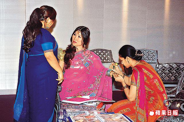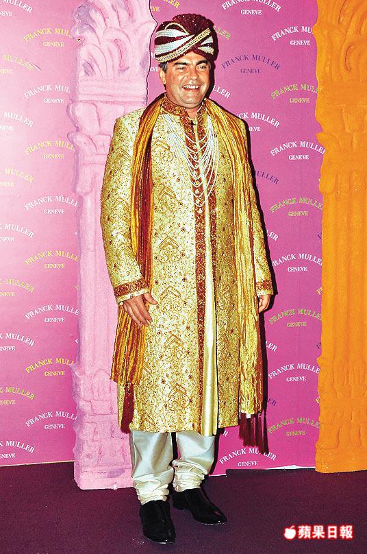 時尚界今年刮起印度風,繼卡地亞和Herm囗s之後,瑞士名錶FranckMuller前晚在灣仔舉行派對,也以印度皇室為主題,處處均是東方異國奢華的印度風情,創辦人FranckMuller親自來港出席,香港代理周國勳、太太周譚惠菁及女兒周穎詩,以及大部份來賓如周啓邦夫婦、九巴後人雷禮權利蘊珍夫婦、龔如心契女徐文玠與丈夫等,都全情投入,變身印度王子、公主,七彩艷麗,金光閃閃。