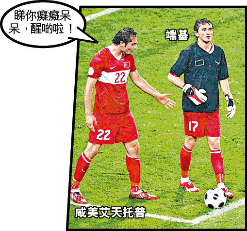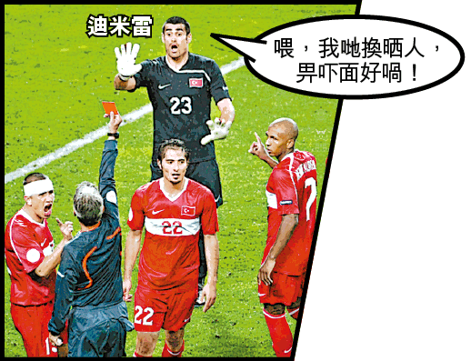土耳其反勝捷克一役,土軍門將廸米雷完場前推跌真高拿被逐,因球隊已用盡換人名額,前鋒端基被迫棄足用手把關。只可惜捷克未能把握良機,甚至連射門機會都製造不到,未能讓球迷一睹他的把關能力。