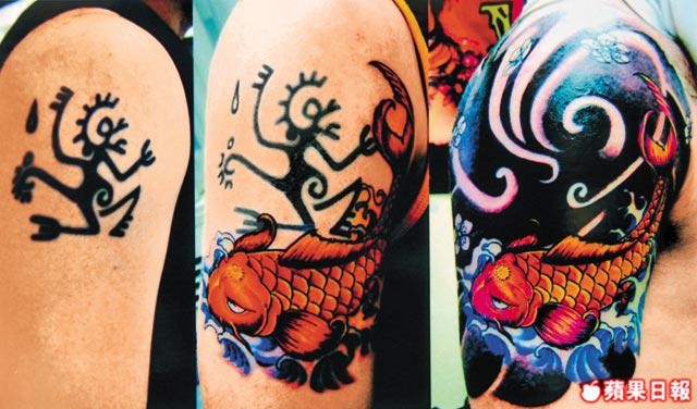 Joey不主張紋Tribal圖案,因為填色時若遇上手勢不好的師傅,很容易填壞皮膚,而且Tribal的實黑色難以蓋過,要將Tribal圖案改頭換面則較為艱難,圖中是Joey順着客人原先的Tribal紋身,設計出來的圖案。