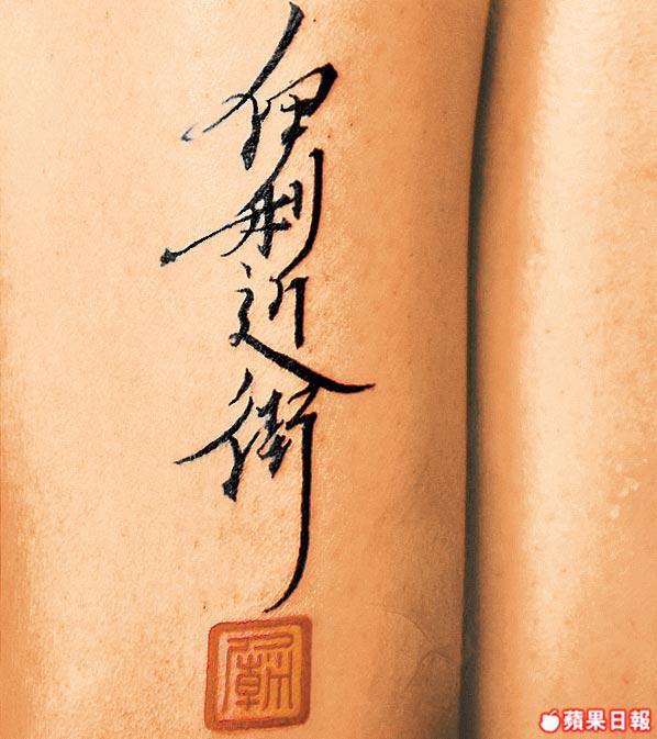 KatVonD以其深厚的素描底子,自成一派Freehand紋身,一舉成名。Joey也覺得做TattooArtist,最重要是具有個人風格,她說︰「我的法國師傅跟我討論時,他覺得外國人眼中,中國的文化實在很吸引,所以提議我走中國風。」於是Joey想到用中國書法,創出一套獨特風格,她說︰「其實都算機緣巧合吧!那時有個移居澳洲多年的香港人,說他的媽媽在他3歲時已過身,因為印象模糊,所以他拿了由爸爸親手寫的碑文,來讓我紋在背上。那次真的讓我感到中文字實在很有意思。」此後Joey開始用自己手寫的書法圖案來紋身,並設計了自家的圖章,就像一幅字畫般,一併紋到身上,Joey︰「每次客人來要我紋書法字,我都好像罰抄般,反覆去寫及設計,通常會寫百幾個字,才挑一個完全滿意的出來紋。」但紋上自己親手寫的書法,則更有滿足感。