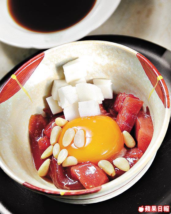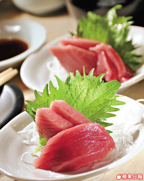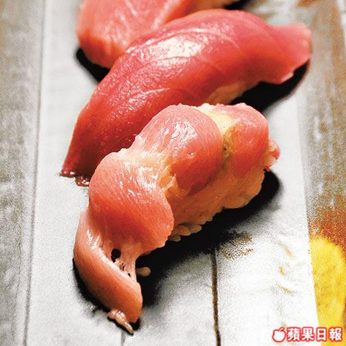 前:藍鰭大吞拿魚腩壽司$40/件,後:藍鰭中吞拿魚腩壽司$48/2件