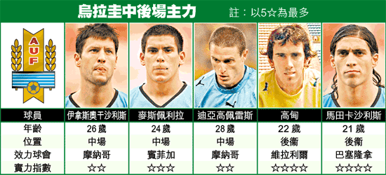 烏拉圭名將輩出,法國球王施丹視「烏拉圭王子」法蘭斯哥利為偶像,而不是柏天尼或居里斯等法國名宿。近年烏拉圭雖然人才匱乏,門將卡連尼、前鋒列高巴及科蘭已屬頂級,但本屆世盃外卻有不少高質球員,可望重振該南美勁旅雄風。