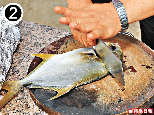 把一條一斤多黃𩶘䱽,去頭和內臟。