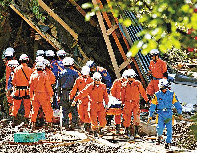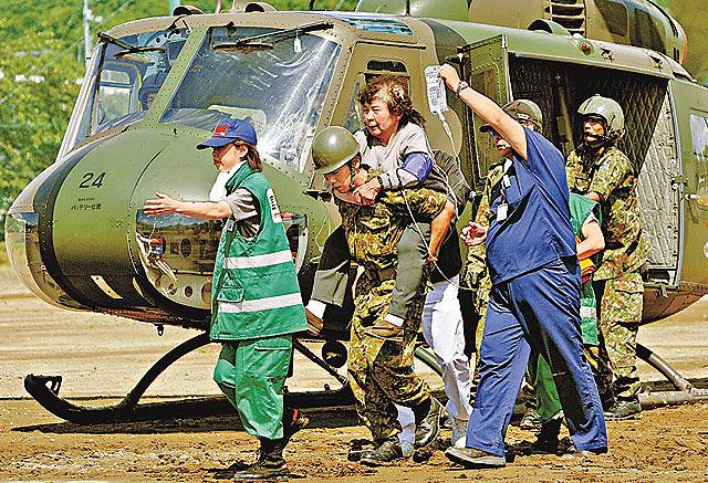 自衞隊出動救人,隊員石破正廣昨日天一亮就率領300名隊員,到宮城縣栗原巿倒塌的駒湯溫泉旅館,搜索7名失蹤者。兩層高的旅館,位於叢林深處,是遊客遠離煩囂的休閒勝地。但大地震觸發山泥傾瀉,水泥將整間旅館冲至數米外,一樓全毀,變成一堆木塊。