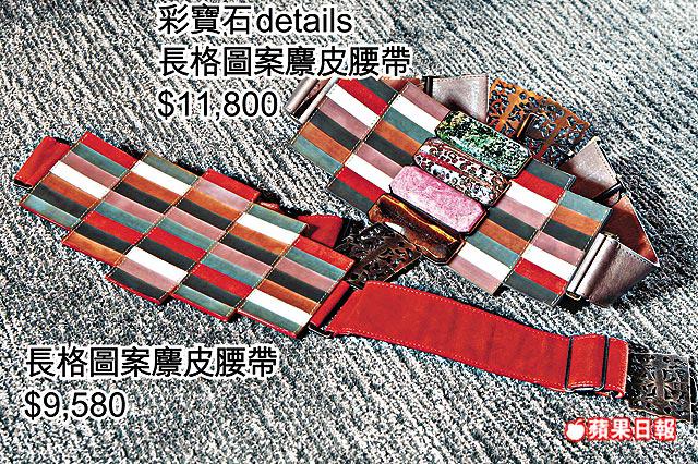 當時裝肩負着每季品牌jettrends形象的使命時,配飾就是分擔cashcow的部門,Fendi在這方面一向十分務實,近幾季埋身開發的,就以腰帶為先,當中多了不少高腰線條的設計,今季就以長方形磚塊式設計,用上彩寶石如綠松石、孔雀石、貓眼石、雲母、碧玉、琉璃及青金石等組合,再襯蛇皮和麖皮等元素,實行掀起beltup風潮。