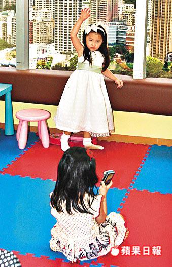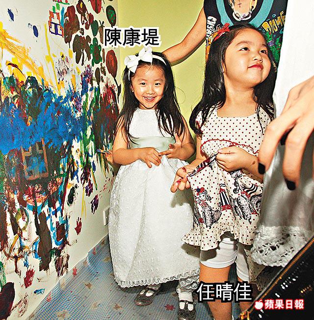 樣子精靈的任晴佳在牆上畫畫,被包圍影相時,即扁扁嘴皺眉扭計,更用英文跟媽咪說:「我不想影相!」其間Ella發現同學仔康堤入場,即開心上前攬着她,可憐小康堤的美麗小白裙,被Ella印上一撻撻紅色油彩。不過小朋友無拘無束,心情轉靚又四圍玩,Ella一時用相機幫小康堤影相,一時又扮打電話,琦琦說:「Ella好鍾意影相,不過怕閃光燈,佢哋係好朋友,一齊跳芭蕾舞、唱歌、去廸士尼。」
