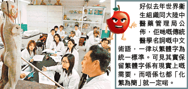 彭:舊年年底嘅時候,有個傳言就話一定要用簡體字,要殲滅咗或者唔准用繁體字。馬英九當時就企出嚟講,我哋一定要堅持,採用正體字。若果佢今日可以企得咁硬,我覺得佢好堅喎!