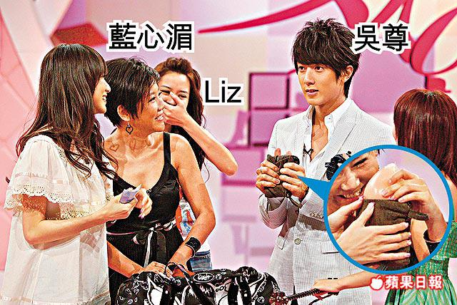 後來輪到吳尊搜台灣女藝人Liz的袋,他摸到一個內藏隱形胸墊的小袋,他不知內裏是甚麼,藍心湄叫他再摸一次感受一下物件的質感,吳尊摸後說:「很軟很舒服。」當得知是胸墊後,他即表現尷尬,Liz也不好意思地擰轉面,後來又流露一副對吳尊很着迷的樣子,可惜吳尊說對她沒特別感覺。
