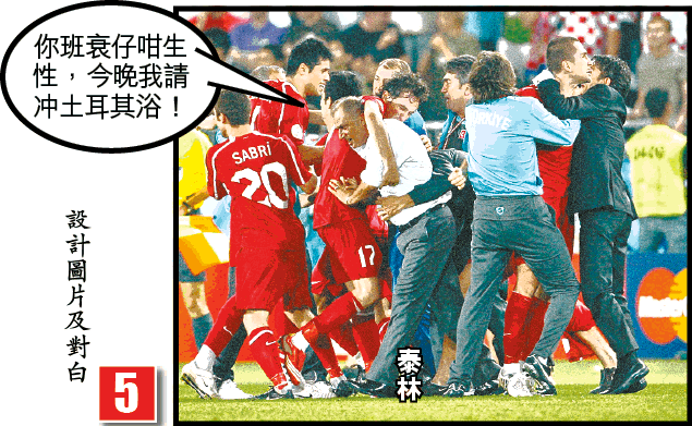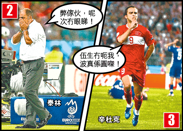 土耳其與克羅地亞在8強上演經典峰迴路轉加時;克軍卡斯歷加時29分鐘頭槌建功,土耳其把握最後一擊,補時兩分鐘由前鋒辛杜克追成平手;士氣大振的土耳其在互射12碼,更以3:1勝出,晉級4強,土耳其教練泰林同眾將猶如從地獄重回天堂。 土耳其在最後兩場分組賽,已在頹勢下反勝瑞士及捷克,8強戰再度發揮「小宇宙」;4強戰德國,會否再演「後勁王」?則拭目以待!