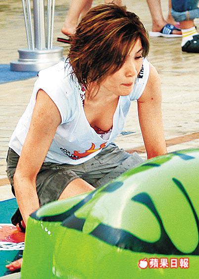 此外,Kary則以師姐身份現身,俯身弄波時更春光乍洩,性感搶鏡,她怕醜地表示沒有特別性感,並稱原本沒有打算落水,所以將大會tee改成較為fashion。