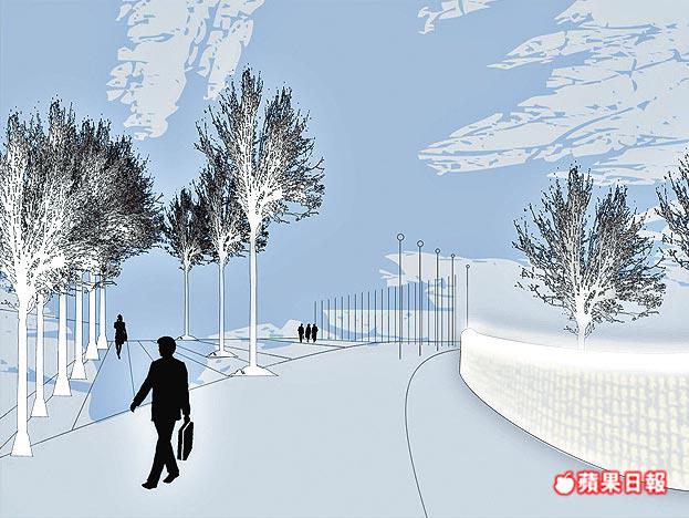 他說部份雕塑品會永久擺放在24小時開放的廣場,但一些藝術品則會融入廣場的公共建築,例如VivienneTam的圖案設計「花開富貴」會出現在廣場的行人路;美國雕塑家DennisOppenheim一件由兩個指環組成的作品「Engagement」則會放置在沙田大會堂前方,配合上址是拍攝婚紗照勝地的背景。