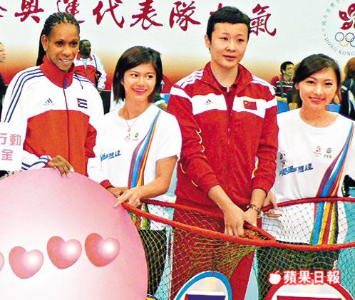 陸詩韻、沈卓盈、鄧上文和陳爽昨日以一身排球服飾到紅館出席「2008世界女排大獎賽─香港站」記者會,同場還有來自中國、意大利、日本及古巴的女排,四人即場與女排較量,利用籃子接各隊隊長的發球,每接一球就會籌得1,000元善款捐助給四川災民,四人最後共籌得22,000元。