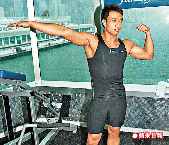 昨日健身中心一班專業教練負責協助12位候選港男示範健身,4號陳冠標擁有46吋巨胸,卻被教練指太大隻欠線條,但陳冠標卻說:「我咁樣係一種人體藝術,表現線條美。」問他是否對自己的身形很滿意?他流露堅定眼神說:「係。」之後他又突然擺出后羿拉弓的姿勢晒肌肉,跟其他候選港男合照時,又起踭挺胸收腹,旁若無人。對於被候選港姐高海寧嫌棄,陳冠標說:「我哋始終係同學。」