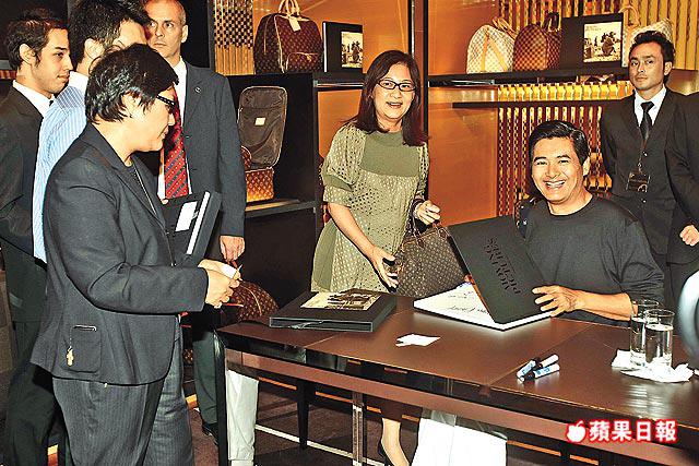 周潤發與名牌LouisVuitton合作的《MovingPictures》個人攝影集,終告面世,昨日在尖沙嘴舉行慶祝酒會及新書簽名會,雖然3號風球高掛,但數十名市民、影迷以及名人趙金卿和杜黃韋娘等仍然冒雨前來,排隊等攞簽名。