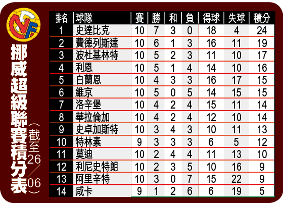 波杜基林特以升班馬身份,目前暫列聯賽第3位,組軍方針值得一讚,簽入真蘇連遜、基斯甸貝治等經驗豐富的球員,巴西前鋒堤亞高馬田斯又處勇態;而且波軍位於挪威北部,主場優勢明顯,今季聯賽主場5戰取得4勝1和,連利尼史特朗、特林素等強勁對手也喪師,今仗就算有布隆格倫及比祖達爾兩名後衞因傷或缺陣,主隊也值得再追。