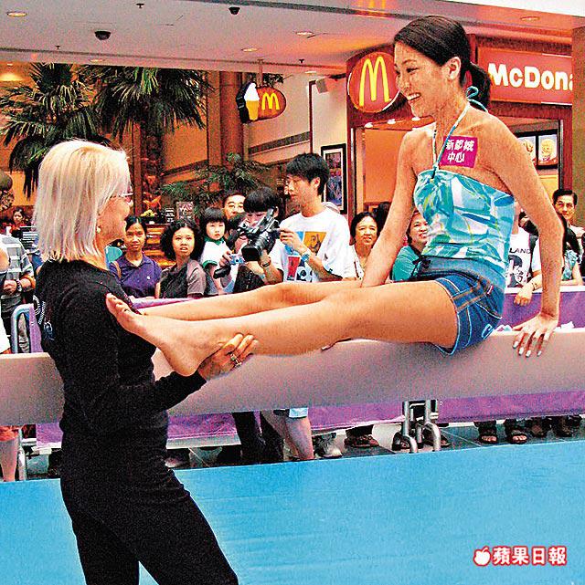 有「體操之母」美譽的奧運體操金牌運動員OlgaKorbut昨日到新都城出席「奧運體操巨星滙香江」記者會,大會安排了陳敏之、袁彌明和莊思敏擔任特別嘉賓,在OlgaKorbut的專業指導下做出一連串平衡木動作。