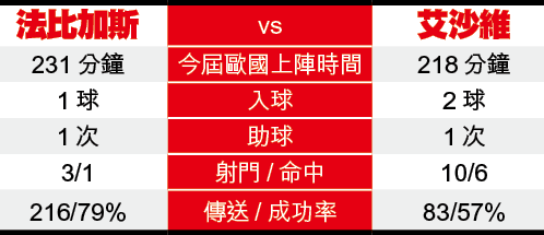 至於西班牙「10號仔」法比加斯,雖然不是球隊必然正選,但充當球隊「秘密武器」的他能力毋庸置疑。由於其位置與「老大哥」沙維踢法相似,故他只能退居後備;然而,他每次上陣也交足功課。
