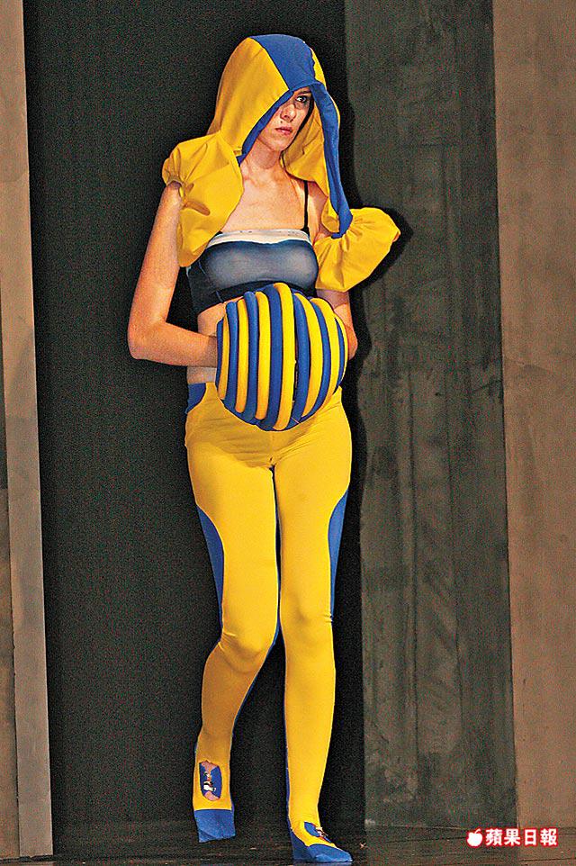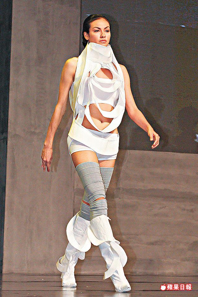整容話題熱爆社會,有學生用整容做主題,將隆胸用的矽膠,縛在模特兒腳上,製造血淋淋效果,或以大自然海洋為靈感的魚鱗服裝、戴安全帽及護耳罩的工地服變奏版等,玩味十足。