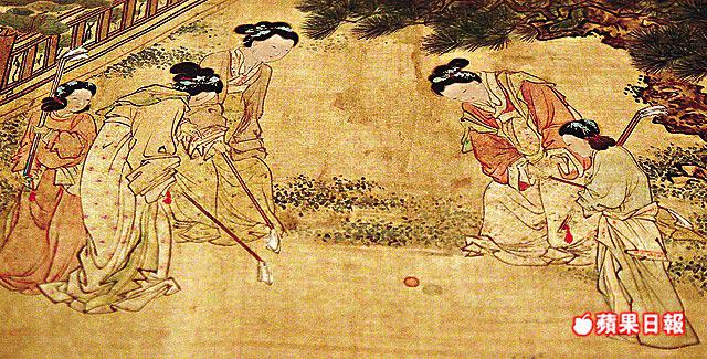 講述貴族娛樂閒趣的明代書畫,除了有男子玩馬球,是由畫師杜堇所畫的《仕女圖卷》,內容描述古代仕女玩高爾夫球及踢足球,描述了兩種體育活動在明朝時代已經出現。