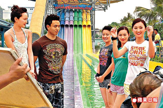無綫12位候選港男昨日在番禺水上樂園進行拍攝,眾港男赤膊上陣玩滑水梯,而12位候選港姐則獲安排穿上背心短褲到場打氣,吸引不少途人圍觀。活動司儀呂慧儀和李綺雯玩得投入,前者更穿上粉紅比堅尼上衣,與候選港男之一、男友10號黃文廸同場,但鏡頭前仍避嫌。