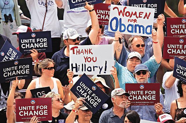 奧巴馬也十分需要希拉莉的忠實粉絲──白人勞工階層和女選民支持。奧巴馬除了盛讚希拉莉,還公開懇求她和丈夫克林頓的襄助:「我們極之需要他們,美國人需要他們的服務、遠見和智慧。」克林頓在初選時多次抨擊奧巴馬,前天沒有出席集會,據說他需要一段時間調適。