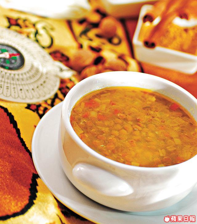 蘭度豆2公斤、紅蘿蔔250克(切細粒)、大蒜/洋葱/西芹各200克(切碎)、黃薑粉10克、小茴25克、肉桂粉5克、蒜茸50克、雞湯5公升、香葉3塊、牛油200克