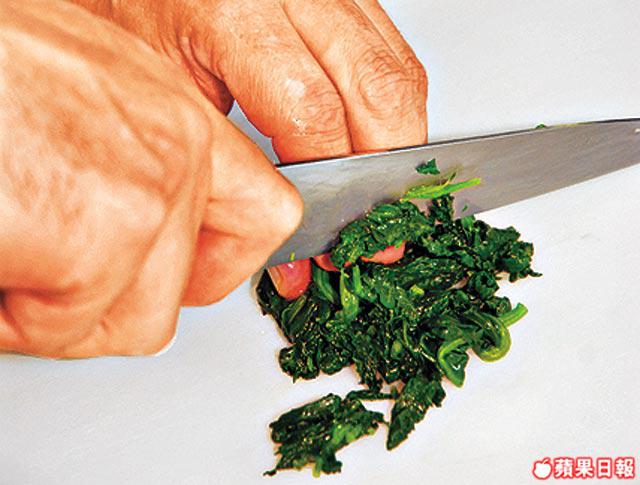 2.菠菜汆水,過冷河後瀝亁切碎備用。