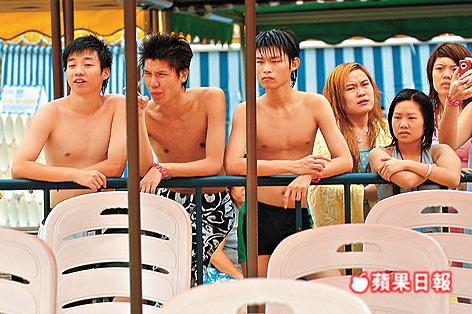 眾佳麗昨日到長隆水上樂園取景,雖然天陰陰,在場泳客不算多,但一班打扮性感的佳麗取景期間仍吸引不少男士駐足眼昅昅。昨日有關方面封鎖了部份範圍給港姐拍攝,但不少男士為一睹港姐風采,紛紛走近拍攝範圍,甚至拿手機及相機拍攝港姐肉照。