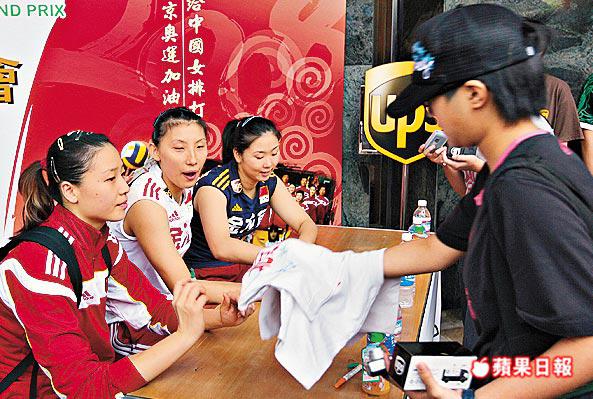 昨日中國隊賽後舉行簽名會(圖),200個籌在短短10分鐘內全部派出;而在簽名會進行期間場面一度混亂,其實在場邊近千名球迷冒着大雨等候,只為一睹偶像風采。
