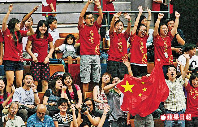 撐中國隊着紅衫