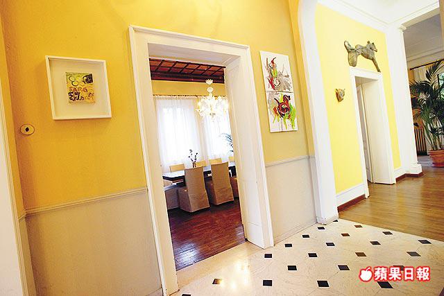 鮮黃牆壁襯巨照