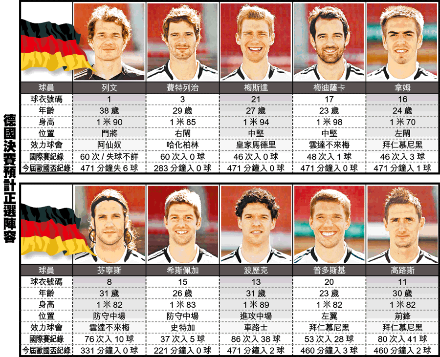 碧根鮑華(德國名宿):「贏西班牙並非沒有可能,關鍵在於不讓西班牙打出風格,要加強緊身攔截。」