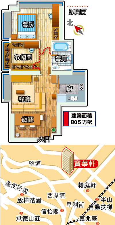 建築面積:805方呎