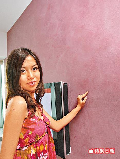 單位除改動間隔外,裝修設計上亦花過不少心思,全屋以深色佈局,更換深木地板,訂做深木家具,客廳一壁塗上桃紅色漆油,並以人手批盪出粗糙紋理,製造視覺對比及特別質感。廚房改用深木趟門,門上不設手把,只鑲不銹鋼片,作為推趟位置,切合簡約風格。廚廁設備屬原裝,保養極新,可繼續使用。