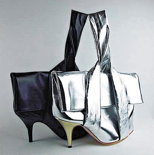 手袋和高踭鞋都是女性恩物,何不亁脆來一次crossover?並非異想天開,一對設計師夫婦已把它們弄出來。手袋加上鞋踭,好處是可堪玩味,而且放在地上也不怕弄髒。