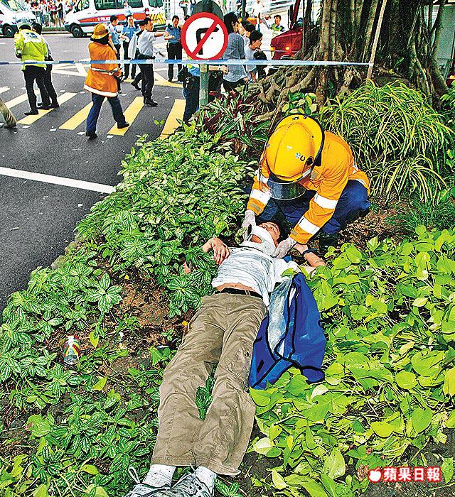 旅巴載着60名心膽俱寒、東歪西倒的乘客往花園道左邊慢線一路滑過去,最後在兩棵大樹中間穿過,車頭直撞向一幢建築物的外牆才告停下,車內亂作一團,多名乘客躺在車廂走廊動彈不得,隨團的屯門區區議員陳文華這時走到司機座位,想幫助司機脫困,但司機對他說:「對唔住,唔好意思,唔使幫我,你哋自己照顧自己。」
