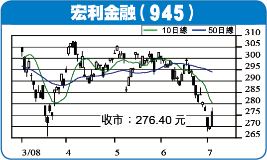 雖然美股整體走勢明顯受壓,不過預期息口在短期內不會調升,對穩定美股及債券市場有正面作用,宏利雖然有機會受到近日金融事件所影響,令盈利預期下跌,但股價已由去年高位360元大幅回落,足以反映利淡因素,而且股價已跌至近期收窄三角走勢底部,預期可作反彈,建議275元買入,上望295元,以268元止蝕。