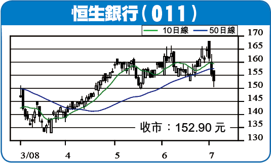 去年全年純利大升51.5%,成績亮麗,相信未來數年可繼續保持理想增長步伐。旗下恒生保險今年首季新造保單方面的巿佔率,高踞全港首位,其他非利息收入業務亦表現理想,有利降低對利差收入業務的依賴,前景可保持樂觀,建議趁近期股價出現調整的機會吸納,可於148元買入,中線目標170元,跌穿140元止蝕。