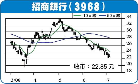 3968招商銀行 收市:22.85元