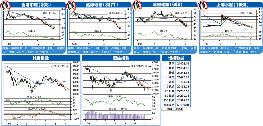 恒指收市報21423,升181點。現貨月期指收21515,升248點,高水92點。