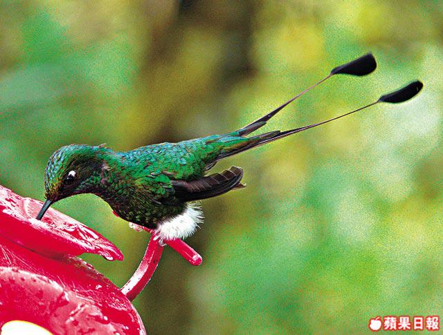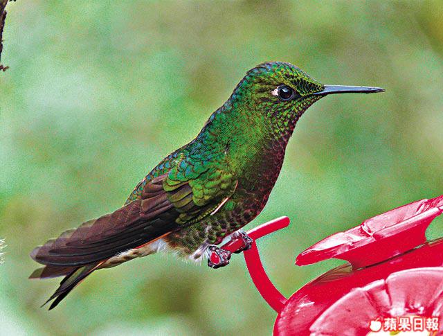 小學生時代,從課本認識世界最細小的蜂鳥,一直希望親眼一睹這可向後飛行的可愛雀鳥風采。今天,在厄瓜多爾的雲霧森林中,終可邂逅這種每秒拍翼200次的蜂鳥,我樂得瘋了。
