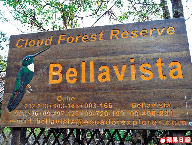 在基多市內,我懷着興奮心情參加當地兩日一夜觀鳥團,出發往名都,目的地是私人保護區Bellavista,Bellavista,英文解作Beautiful,即美麗之意,親身體驗過,果真名副其實,一草一木一山一水盡皆美。旅遊車離開海拔2,800公尺的基多市,一小時後開始往下走,周遭環境,很快便由泥土色的高原變成綠油油的雲霧林,在狹小山路兜轉,旅遊車終於走入保護區。抵達接待處,我心跳開始加速,蜂鳥呀!那些不就是蜂鳥嗎?我看到蜂鳥的蹤影了。是啊,在接待處對出的樹叢邊,已看到十多隻蜂鳥圍繞人工哺育器飛舞,畢竟是初次邂逅蜂鳥,當然要第一時間拿出相機拍個痛快。