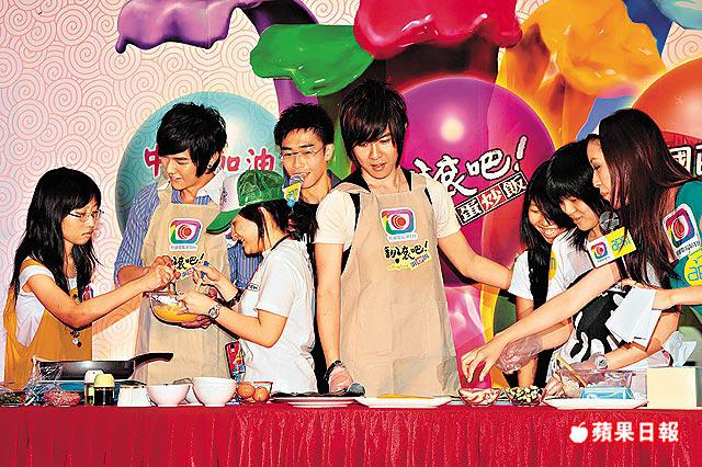 汪東城為配合即將喺香港播出嘅新劇《翻滾吧!蛋炒飯》,佢同好朋友唐禹哲分別喺台上表演炒飯同捲壽司。兩人仲非常識做地替台上擔任助手嘅女fans抹汗,就連任司儀嘅有線女主播鄭文都唔放過,令佢喜出望外。雖然汪東城同唐禹哲喺台灣被傳斷背,不過佢哋喺台上就毫不猶豫地將手上嘅食物互餵,引到全場fans尖叫。