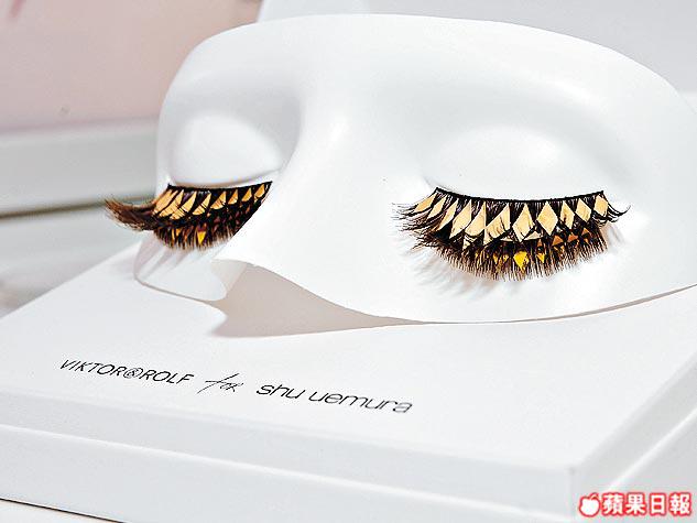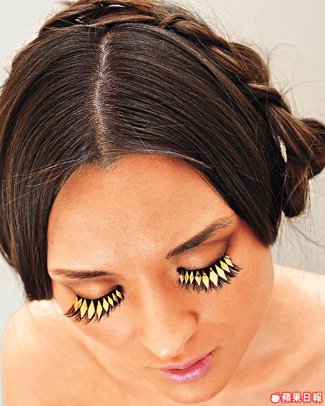 新一季的TokyoLashBar重點之一的植村秀×Viktor&Rolf的三款彩妝睫毛中,今次Mina選了其中最華麗的金睫毛來設計她的作品。由於睫毛非常搶眼,所以全面由眼到胭脂以至唇妝都只選跟睫毛同Tone的金色和茶色。而就算不用這誇張的睫毛,這妝容也跟香港女生的膚色很合襯。