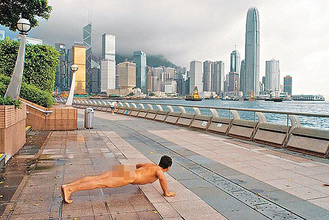 在區志航放出的照片中,可以看到他全身赤裸,在八達嶺長城、廣州中信廣場、香港金紫荊廣場、樂山大佛、天津眼摩天輪等地標附近做俯卧撐的相片。